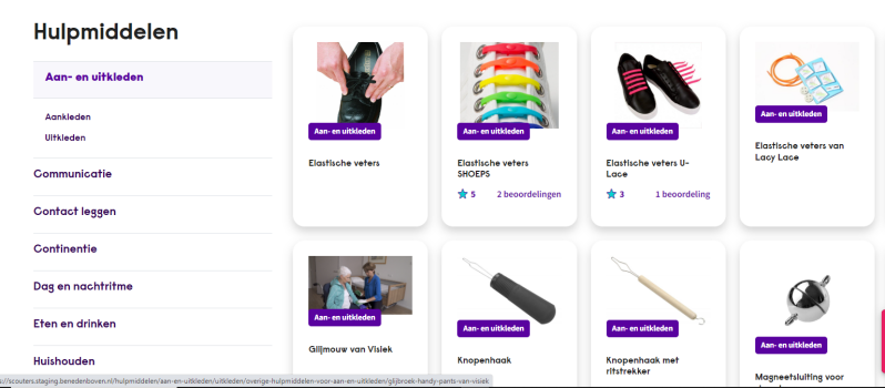 Op de hulpmiddelenwijzer staan aantrekhulpen voor een bh, en een filmpje met tips hoe je de bh met één hand aan kunt krijgen.