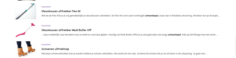 Ik deed ‘slappe’ sokken aan, die ik met één hand kon aan- en uitdoen. Gevolg was wel, dat mijn benen dik werden, maar dat ging over toen ik zelf weer de strakkere sokken / kniekousen aan kon doen.