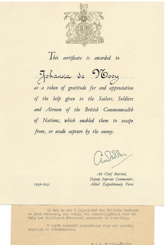 Deze oorkonde is behalve aan Anna ook aan Mien, Cor en Jacobus toegekend. Ze kregen ook oorkondes van Churchill en van Eisenhower.