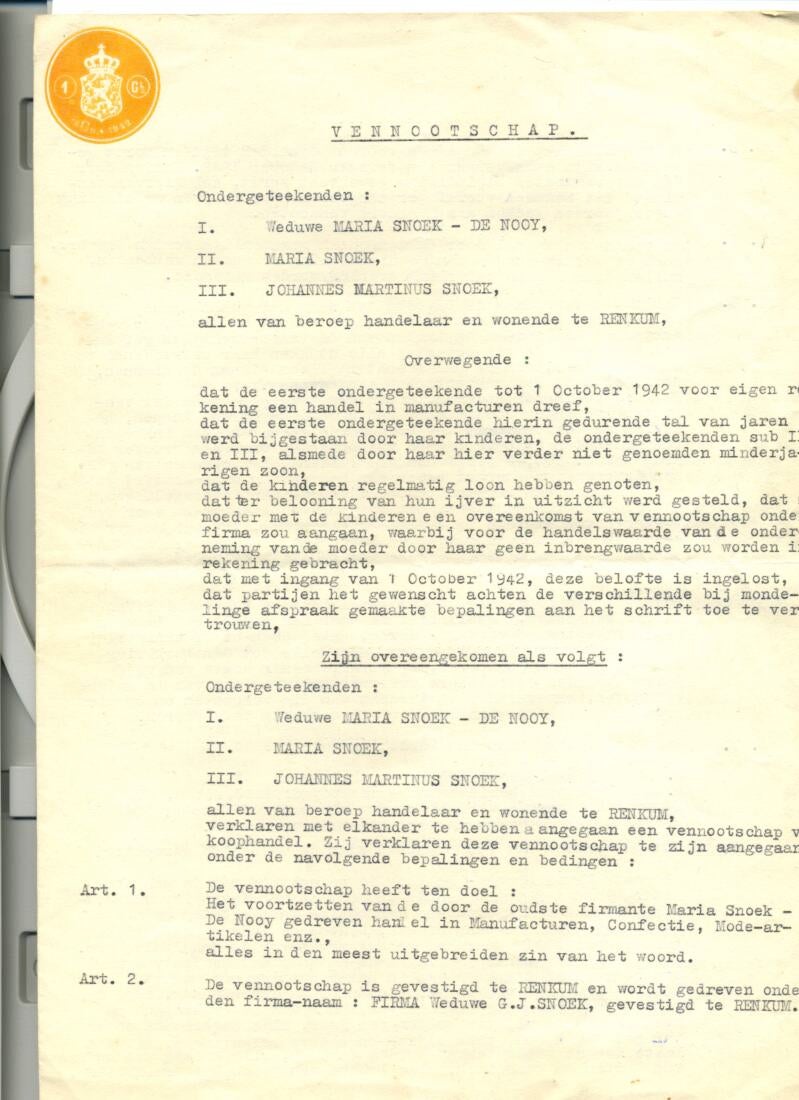 Middenst diploma en Vennootschap 1942, Marie Snoek de Nooy, Johan, Wim