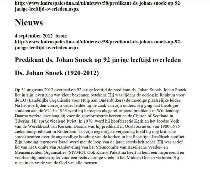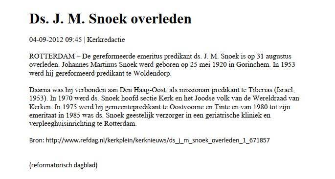 afscheid genomen van Ds Johan Snoek. Hij overleed op 92 jarige leeftijd.