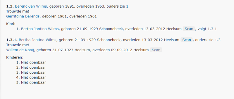 Wim de Nooij geb 31-7-1927, overl 9-9-2012 x 16-6-1955 Bertha Jantina (Bep) Wilms geb 21-9-1929 te Schoonebeek; overl 13-3-2012 Heelsum