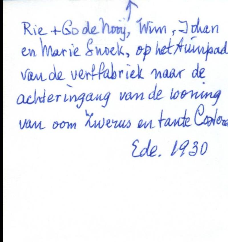 oa Marie Snoek-de Nooij 08.2A.28A, Corry Snoek-Dijkstra 09.2A 28B, Trijnie Snoek-Slootweg 09.2A 28C, tante An de Nooij-Snoek 08.2A.28.HSnoeknr, Johan Snoek 09.2A 28B, Gé Snoek (Wimzoon); Go Scheurs-de Nooy 09.02.37 , Irene en Marjolein Meijer.