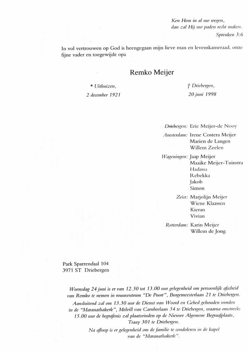 1. Ca 1955 Remko Meijer (geb 02-12-1928 Uithuizen. Overl Driebergen 20-6-1998)