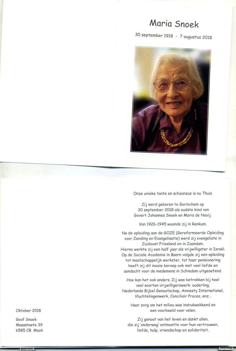 Maria Snoek (99) overleden