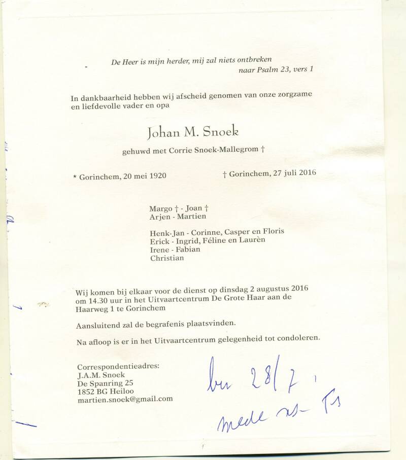 De 'kinderen' Arie 09.2A 28E (17.8.1921, overl 12 okt 1984) en Florie 09.2A 28H, (geb 11.4.1928 overl 28-10-1998) staan er niet op.