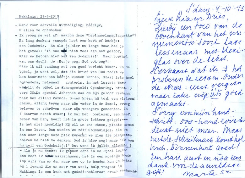 Maria had het heel vaak over haar periode als evangeliste in Makkinga. Maar de buurt waar ze werkte heet nu Nijerbekoop. Johan Meester van de historische vereniging ontdekte via de stamboomsite (toen op Oryx, de site van neef Ge Snoek), dat ze nog in leven was en waar ze woonde. Contact en bezoek volgden. Een groot deel van het interview met haar is gefilmd. Maria genoot van het ophalen van herinneringen. Het deed haar ook goed, dat ze blijkbaar goed werk verzet had en indruk gemaakt had :-)