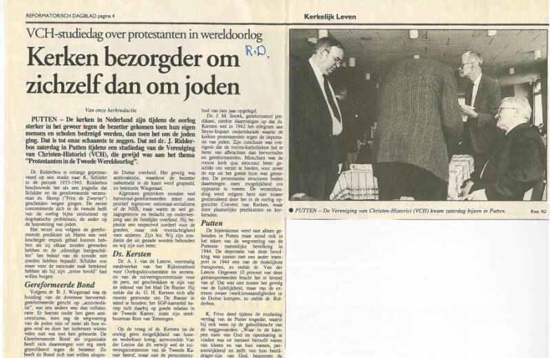 84. Kerken bezorgder om zichzelf dan om Joden. VCH (De vereniging van Christen Historici) studiedag over protestanten in wereldoorlog & foto met JMS: (VCH) kwam zaterdag bijeen in Putten